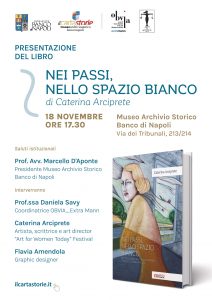 Palazzo Ricca, sede della Fondazione Banco di Napoli e del Museo dell’Archivio Storico, ospita, martedì 18 novembre 2025, alle ore 17.30, la presentazione del libro “Nei passi, nello spazio bianco” di Caterina Arciprete, artista e art director del Festival Internazionale “Art for Women Today”.